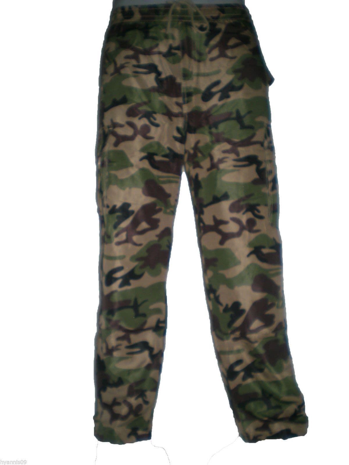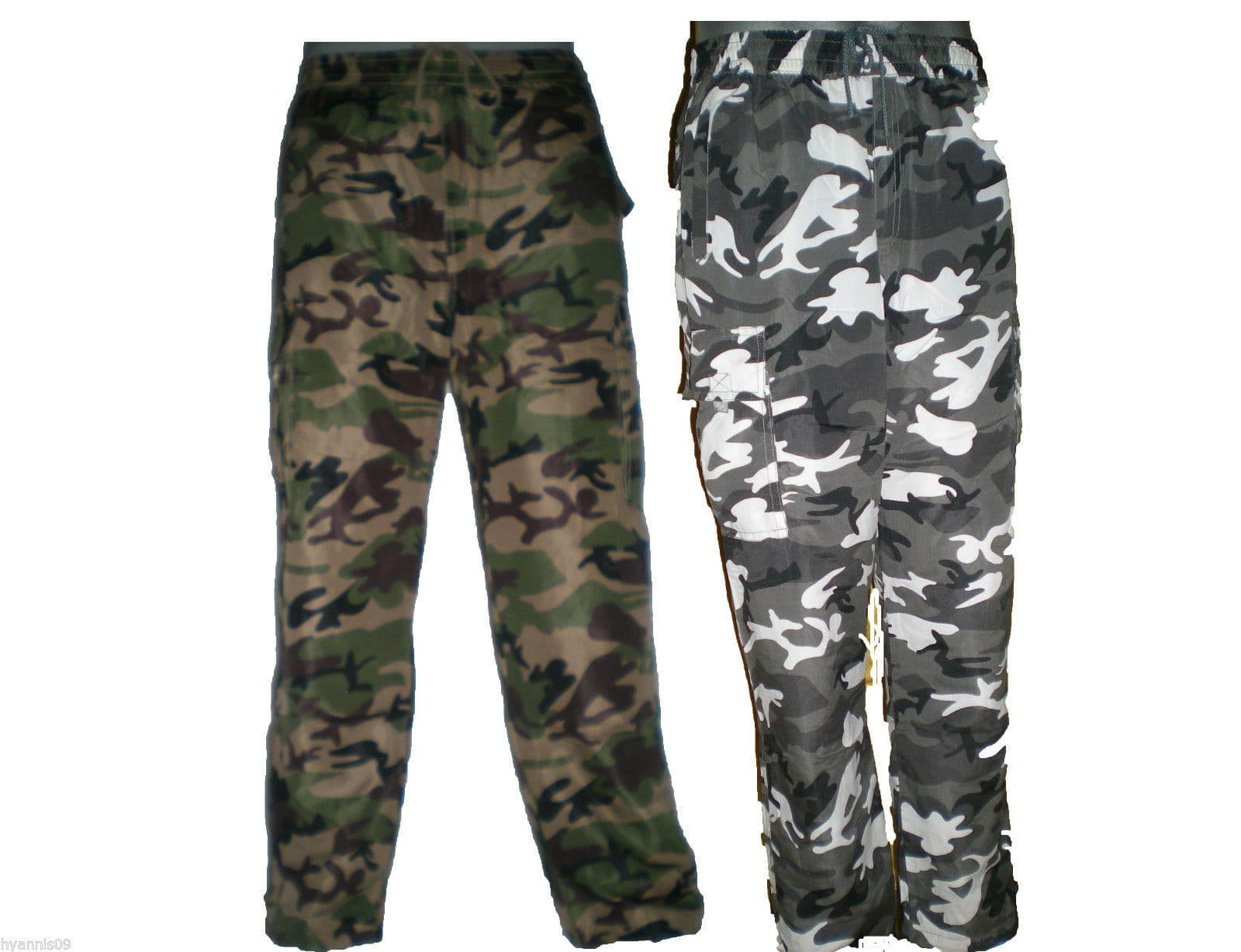 Mens Army Work Combats Cargo Camouflage Military Fleece Lined Trouser/ Pants Full elastic with draw string at the waist Zip fly 6 Pockets Two front side pockets Two Velcro fasten back pockets Two Velcro fasten thigh pockets Draw string at the hem Fleece lined for warmth and comfort Water repellent Sizes S, waist, 28" Length, 29" M, waist, 30" Length, 29 L, waist ,32", length, 30" XL, waist. 34", Length, 31" 2XL, Waist, 36"/ 38",Length, 31" Colours Black & White Green & Black Ideal for warm work wear, walking,gardening, fishing, shooting & smart casual wear,